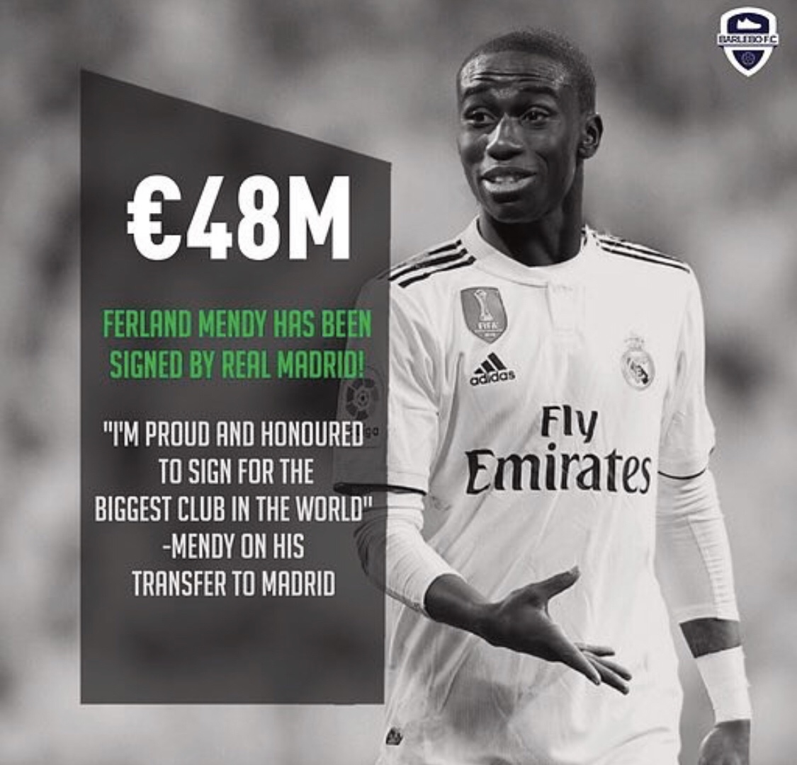 Real Madrid announced on 12 , June 2019 that they had completed the signing of Lyon’s Mendy for £42.7million ( 48 million euros) in the latest bid to strengthen their side for next season.