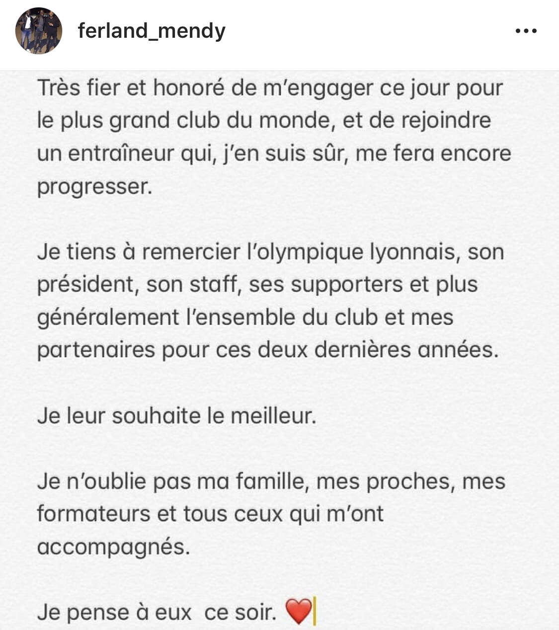 “I am very proud and honored to commit myself today to the largest club in the world and join a coach who I am sure I will still progress. I would like to thank Lyon for his president, his staff, his supporters and more generally the entire club and my partners for these last two years. I wish them the best. I do not forget my family, my relatives, and all those who accompanied me”.
