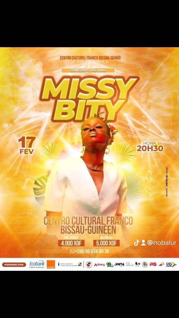 Ontem (17) aconteceu o show intimista da cantora e compositora Missy Bity na capital, Bissau. O concerto realizado no Centro Cultural Francês em Bissau , ao vivo com banda, Iaia… Leia mais: MÚSICA: ACONTECEU EM BISSAU SHOW INTIMISTA DE MISSY BITY AO VIVO COM BANDA - EDUCAÇÃO: FUNDAÇÃO CATARINA TABORDA ABRE CANDIDATURAS DE BOLSA DE ESTUDO PARA PORTUGAL