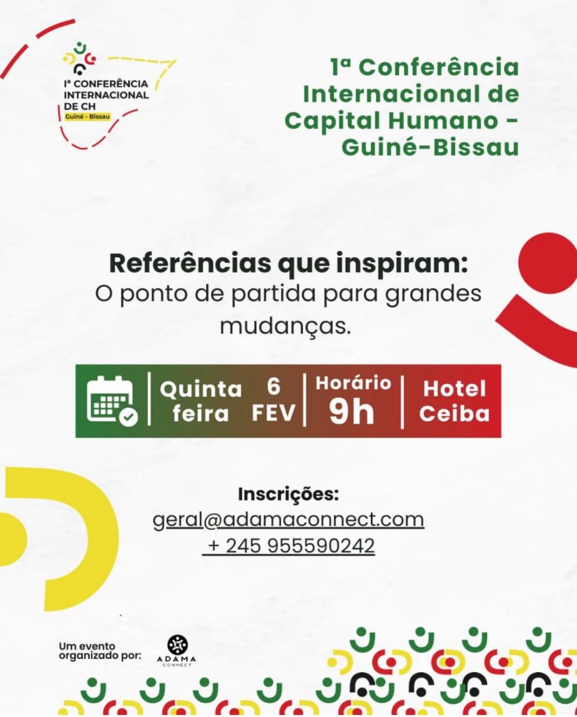 1ª Conferência Internacional de Capital Humano, ocorrerá no dia 6 de fevereiro de 2025, no Hotel Ceiba, na Guiné-Bissau. Com o tema “Referências que Inspiram”, a conferência é um evento… Leia mais: ADAMA CONNECT ORGANIZA 1ª CONFERÊNCIA INTERNACIONAL DE CAPITAL HUMANO NA GUINÉ-BISSAU - NOBALUR APRESENTA: MDBA – MINDJER DI BALUR AWARDS- REVISTA E PRÉMIO DE RECONHECIMENTO EXCLUSIVO PARA MULHERES GUINEENSES