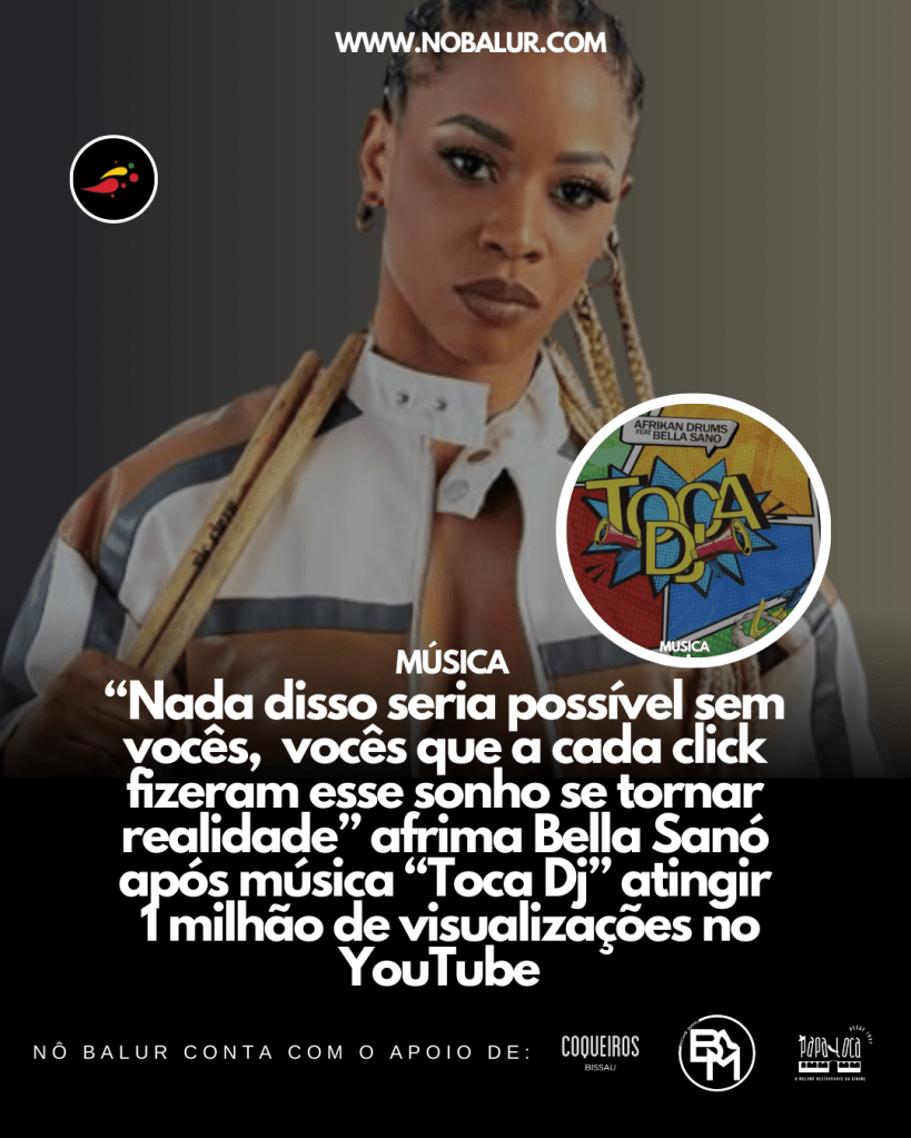 A cantora Bella Sanó comemora mais um marco importante em sua carreira: seu single em colaboração com a dupla Afrikan Drums “Toca Dj” ultrapassou 1 milhão de visualizações no YouTube,… Leia mais: MÚSICA: Bella Sanó celebra 1 milhão de visualizações no YouTube com “Toca Dj” - Stella Iala entre os 100 Pioneiros Mais Influentes da África e Projeto Nô Balur é reconhecido Internacionalmente