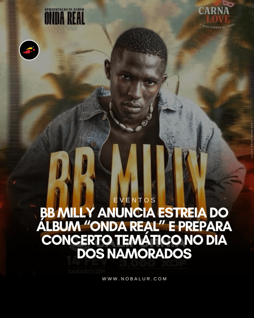 O artista BB Milly, uma das novas promessas do cenário musical guineense, anunciou o lançamento do seu primeiro álbum de estúdio, intitulado “Onda Real”. O projeto, que será apresentado oficialmente… Leia mais: EVENTOS: BB Milly anuncia estreia do álbum “Onda Real” e prepara concerto temático no Dia dos Namorados - Rasta Dine anuncia lançamento de nova música intitulada “Bisti Sabi”.